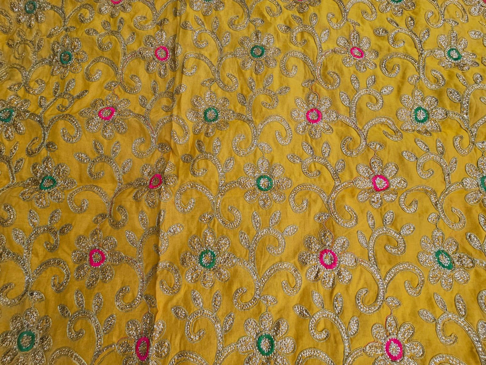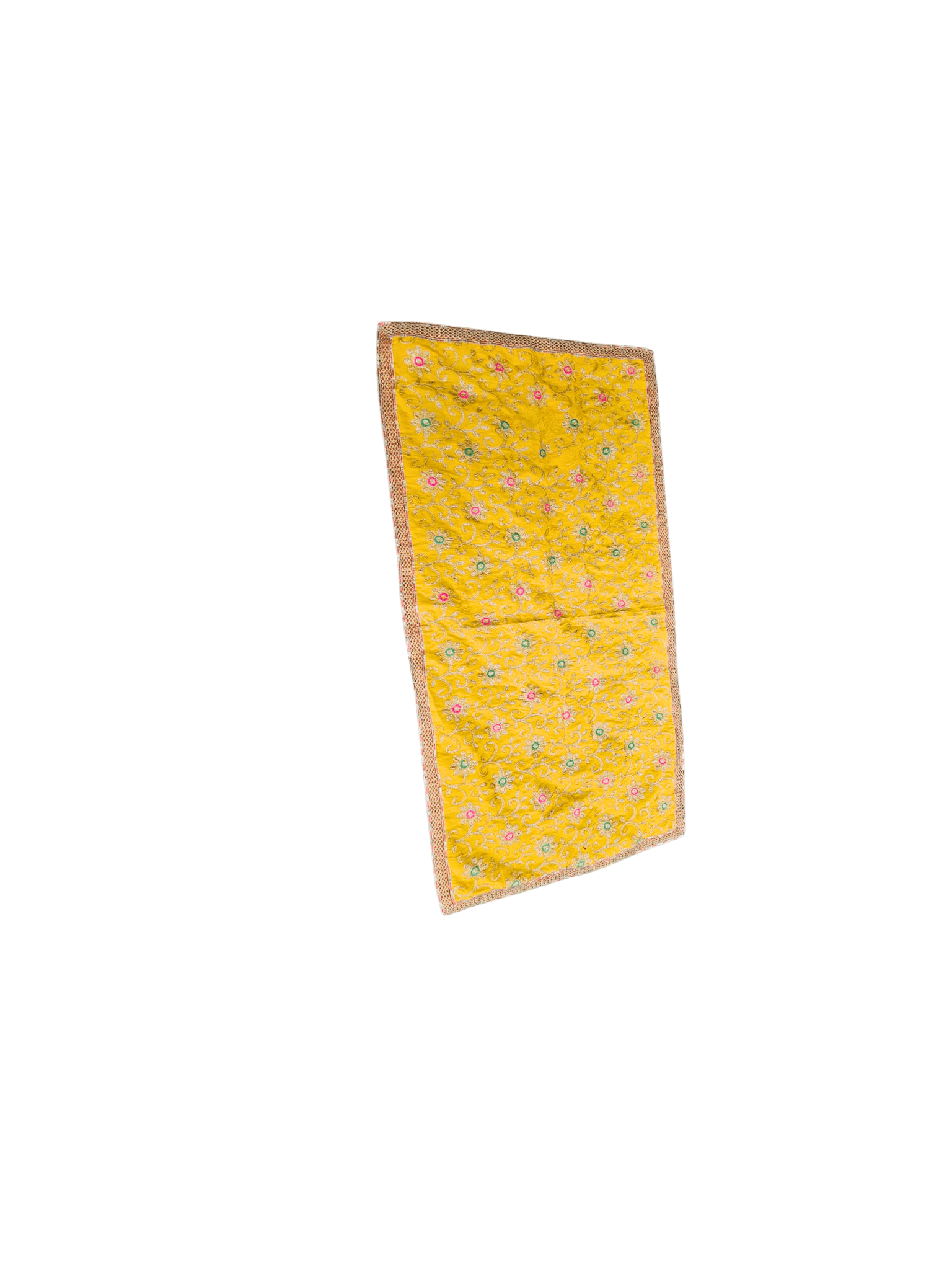 Dupata color amarilla oro. Chales tipicos de India, también pueden ser usados como pareos multiposición para colocar como vestidos o tops, o para cubrir los hombros, brazos o la cabeza. Bordadas con lentejuelas, pedrerias y hilos de colores.