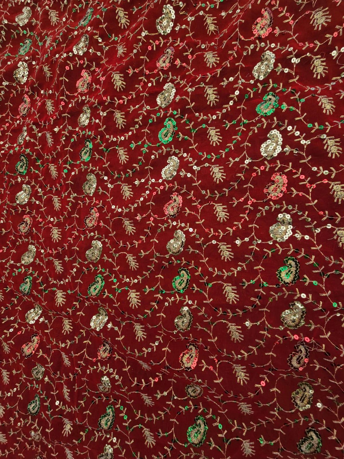 Dupata color roja. Chales tipicos de India, también pueden ser usados como pareos multiposición para colocar como vestidos o tops, o para cubrir los hombros, brazos o la cabeza. Bordadas con lentejuelas, pedrerias y hilos de colores.