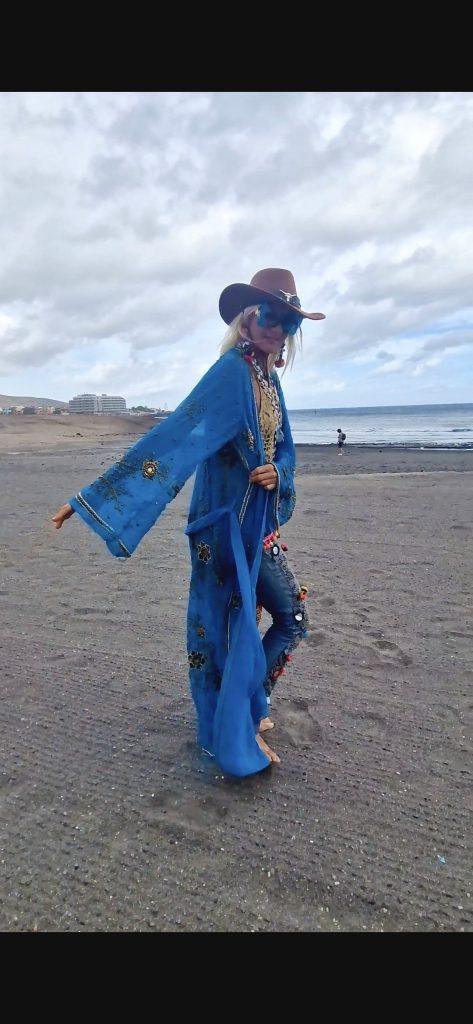 Kimono joya de viscosa en color azul turquesa bordado con pedreria en dorado. Kimono recto, largo y con cinturon. Talla unica. Modelo unico y exclusivo. Bordado a mano.