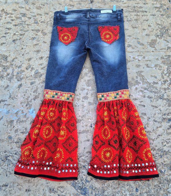 Pantalón Jeans customizado pulkhari rojo
