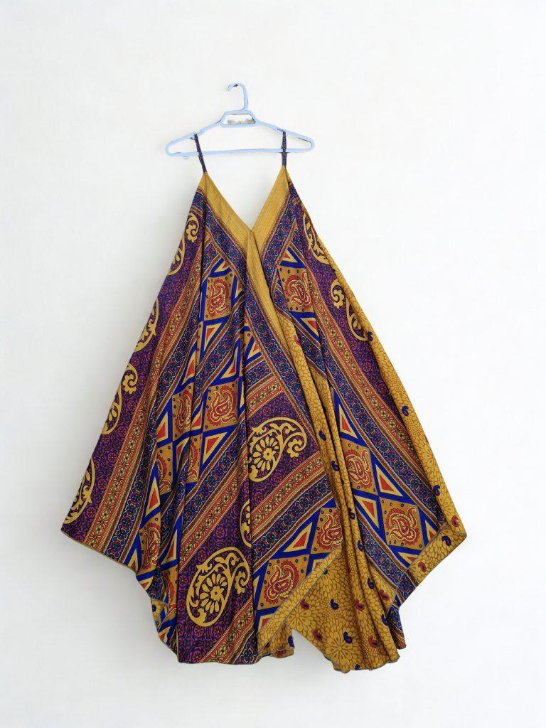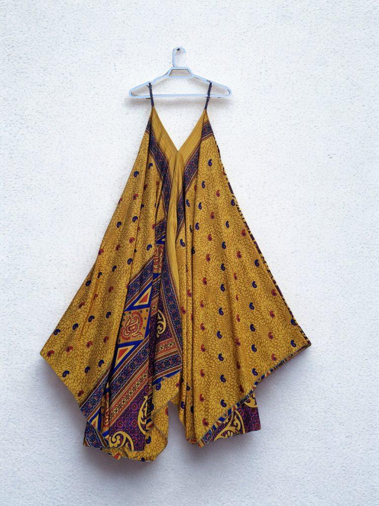 Vestido modelo hang loose en seda color amarillo con detalles en rojo muy confortable y ajustable para cualquer talla. Lleva un cinturón tambien en seda para ajustar en la cintura.