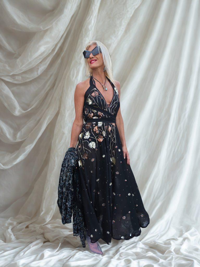 Vestido joya negro cobre plateaso