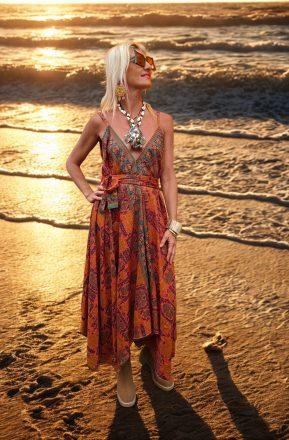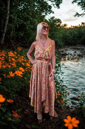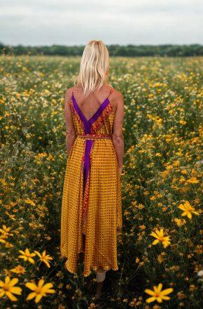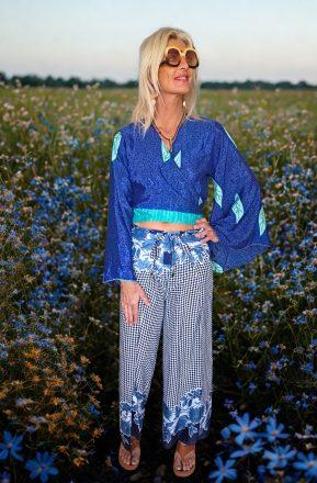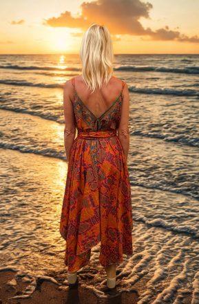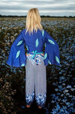 Vestido modelo naked exclusivo con espalda abierta, en color azul. Con altura regulable. Talla única.